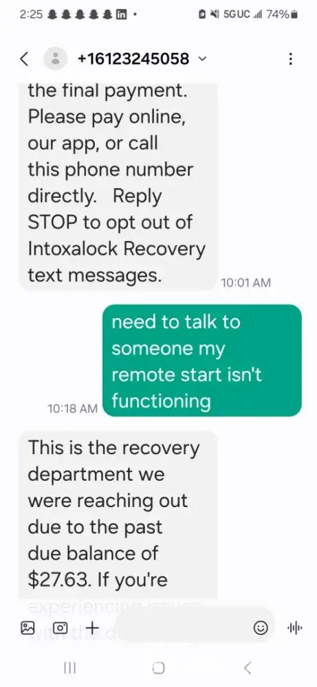 Have been living a nightmare with this company since 2020! Device draining battery, draining alternator. Money out of my pocket! Device locking me out due to device malfunctioning. The device being tampered with ever since I put this device on my first vehicle in 2019! 3rd final calibration was 7/28/23 went to calibrate do FINAL CALIBRATION! Got to service station same service station I have been dealing with for over a year! The Car People on Dickerson pike. Intoxalock would NOT allow me to calibrate! And complete FINAL calibration! I called and an agent stated I owed moneys that I didn’t owe! Stated I owed $240. Now I had emailed [protected]@intoxalock.com and the other 3 emails I faxed proof of this payment a month prior to 7/28/23. Fax confirmation states 6/29/23 at 12:15. Called to make sure fax and emails were received! Not one email or fax I sent was ever received. I was sending proof of payments and calling handling the situation about this payment because I knew the company was playing with me and scamming me. I have paid for this device over 10 times already. It just so happens the email came through on 7/29/23. Because of them lieing about my payment and not allowing me to calibrate! Im locked into this device for another 120 days! I have never missed a calibration or payment. And I should have had this device off a year ago On 7/9/2022 day after FINAL calibration. Going to work at 530am the device locked me out. Stated I blew .99 Bac? I don’t drink! I hade to have the vehicle towed to nolemsville pike costing me over $200 for tow and some men at service station stole vehicle registration and made took copy’s of my keys to home vehicle and connected a iCloud hotspot which connected to my iPhone and they were able to Robb me and take over my identity. This company and there faulty equipment reporting false info. Violating me and giving me another 120days. This is 3rd time this company has done this to me! Robbing me and playing games with my life and driving record. Two weeks ago I was stranded in Florida for 9 days due to the device locking me out! Agents lieing to me for 7 days straight. Saying they were waiting on an approval from the state before I could get help with tow once again for the 8th month in a row! false data to monitoring authority and judges! Every month vehicle being towed due to faulty device. $200 a tow x 8 months in a row now! Leaving stranded for weeks or so at a time. Company not reimbursing my tow receipts.keeping me trapped paying for feesgames and living to me.