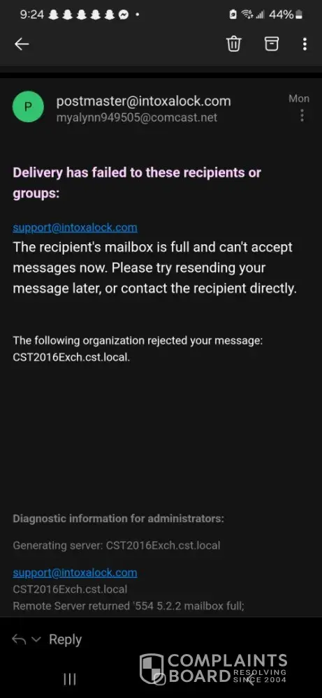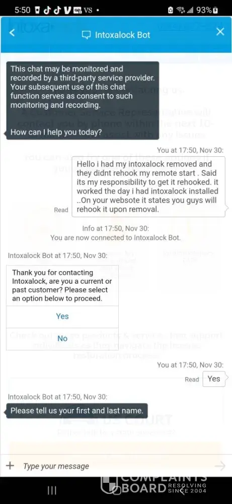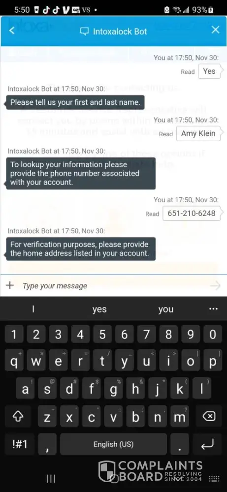 - While Intoxalock has a high level of trust, our investigation has revealed that the company's complaint resolution process is inadequate and ineffective. As a result, only 0% of 348 complaints are resolved. The support team may have poor customer service skills, lack of training, or not be well-equipped to handle customer complaints.