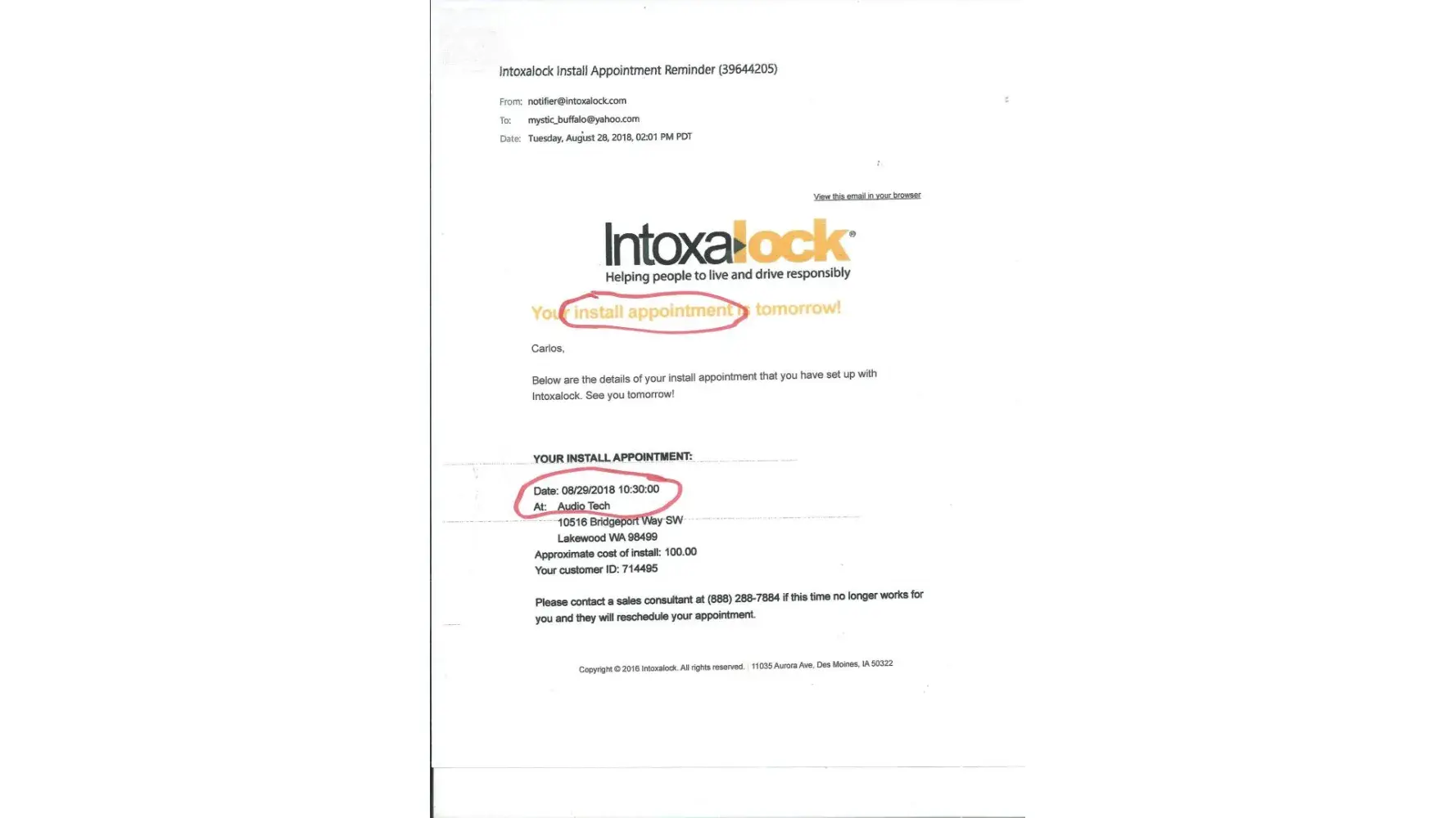 THERE IS AND NEVER WAS INTOXICLOCK IN MY VEHICLE OUTSIDE OF THE MECHANIC SHOP..