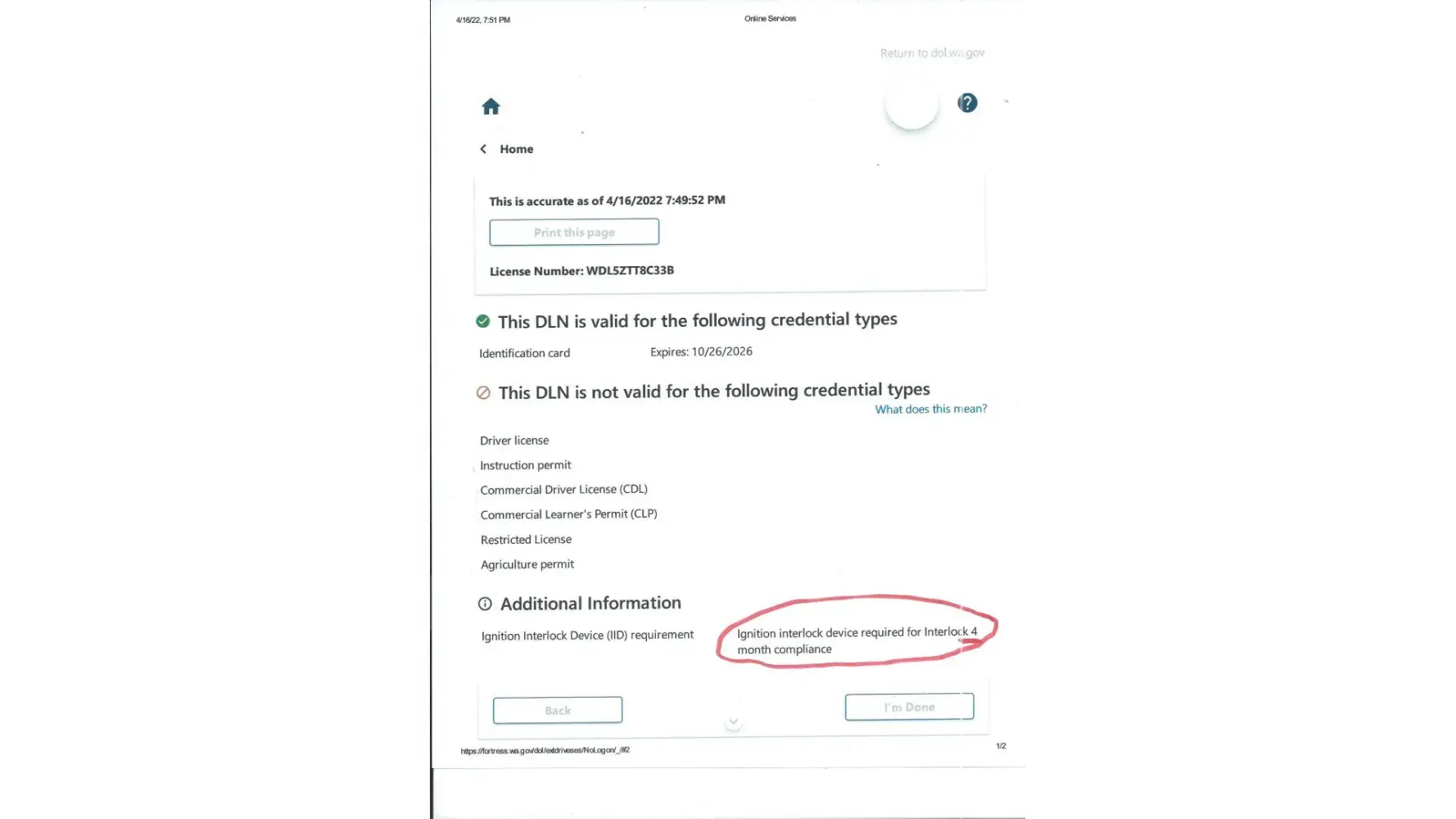 Desired outcome: Only wish to get a Letter to be able to move on to the next step . Need a Letter stating that I have completed 4 months with ignition interlock system .