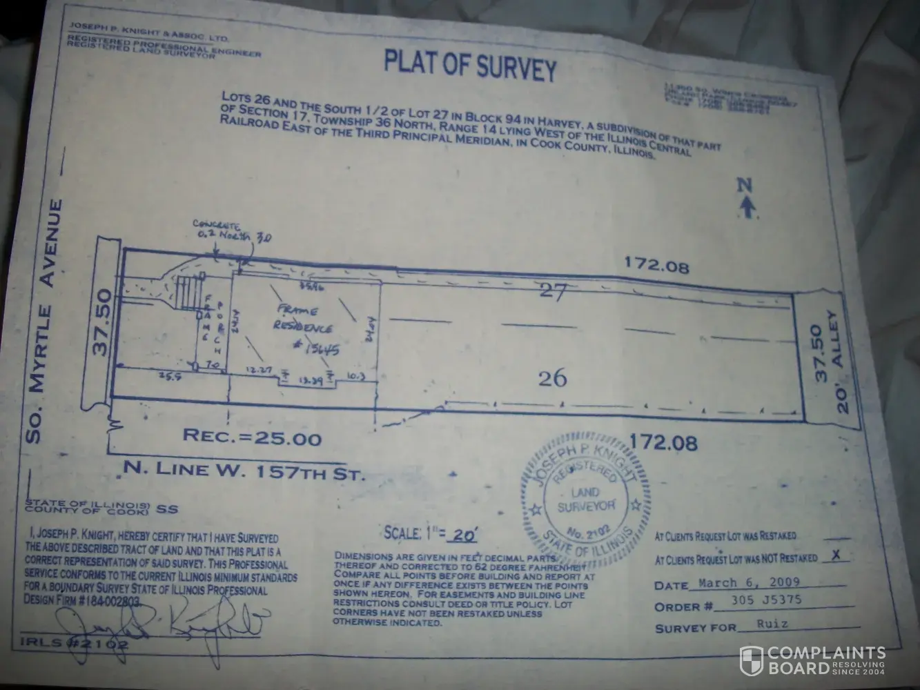Read full complaint and 7 commentsjoseph knight surveyor - honoring there comment