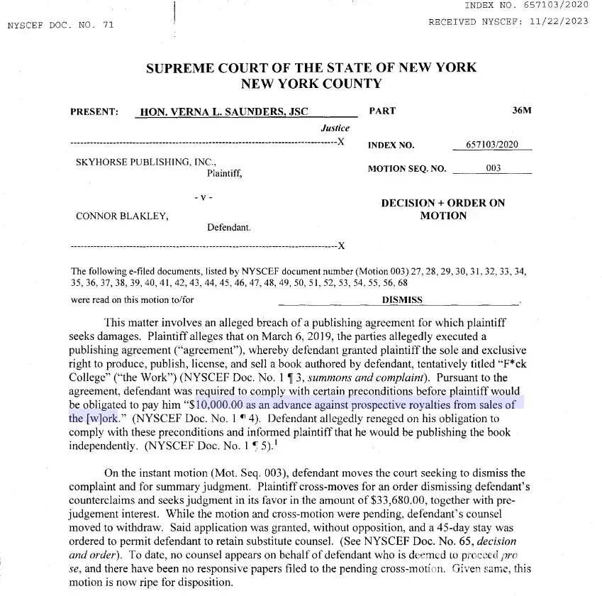 Connor Blakley (Bru Brands / Youth Logic) - Breach of contract and fraud: multiple $20,000+ lawsuits