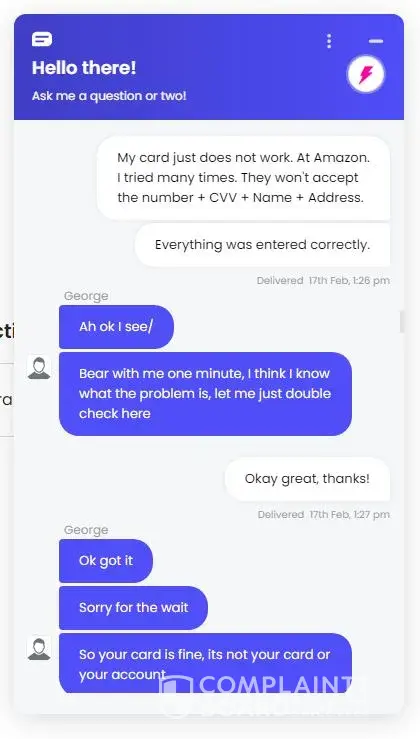 The card is completely unusable. I try to use it on Amazon - declined. Gas stations - declined. Walmart - declined. So I reached out to the support and they said I could take out the $60.19 I had deposited by taking the card to a local bank branch. I tried that when I was at a Bank of America branch. Declined. Now everytime I try to get the support to fix...