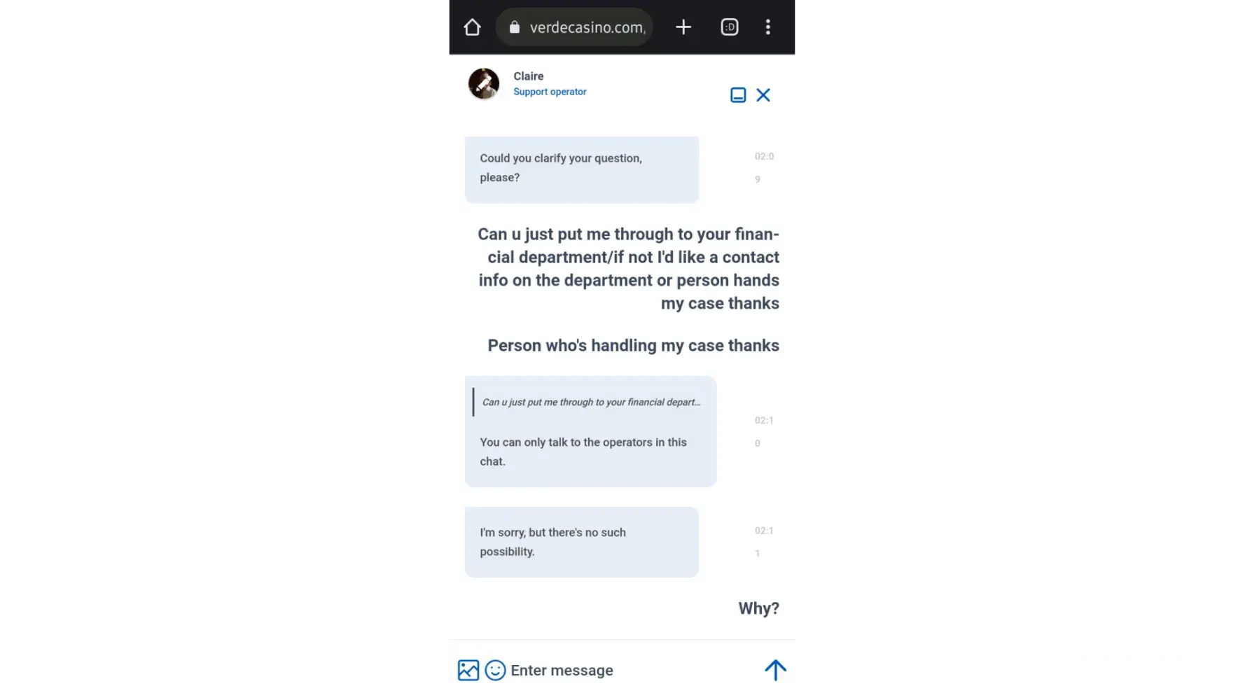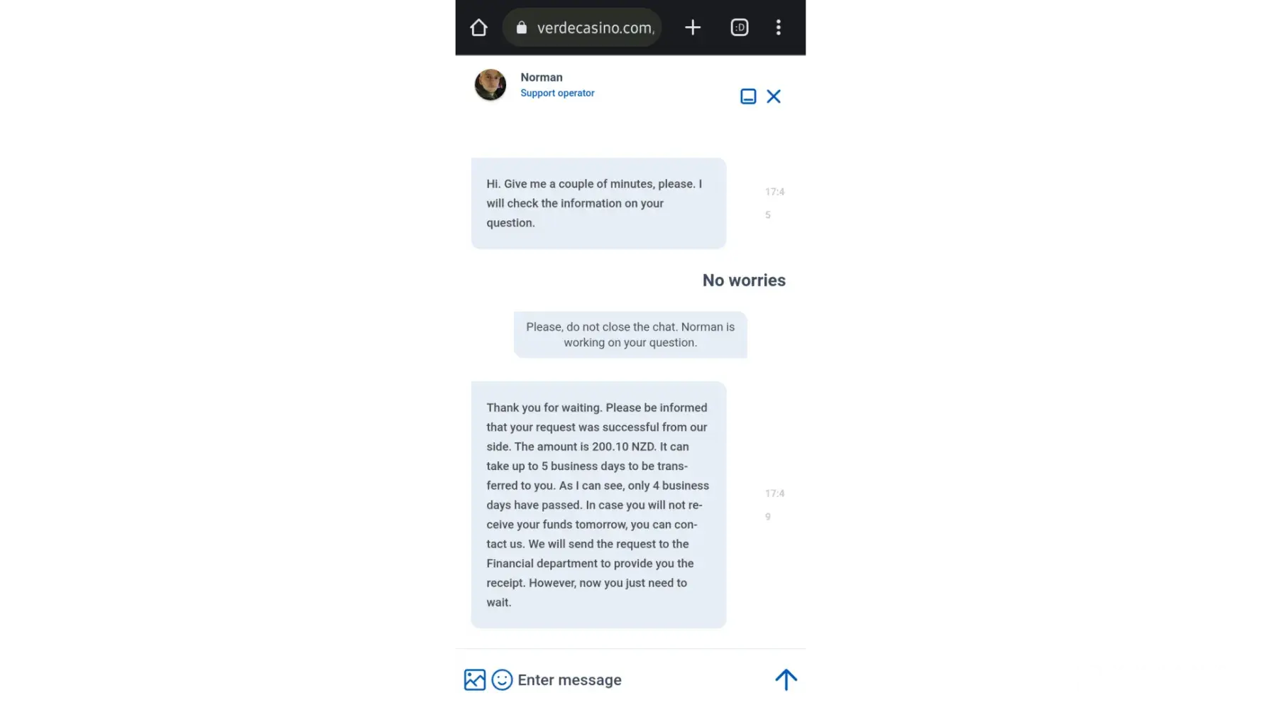 Then claimed they dont have ther details yet other times they have been contacted and I need to wait... They say they can see my complaint has been forwarded to financial department then say they dont have any contact details for them?*must still be using pigeons to communicate) so how was it forwarded and what is it they mean "they can see its been forwarded if not a email... Also that its not ther financial department they have so many different providers that they dont know what's happend whos got it or where the $ is. Once or twice the reason to why I havent been paid was that there aren certain difficulties and situations that can hold my payments up but cant tell me what they are.. What my 13 +days (and counting) of screen[censored]s really expose is a very surface level very generic smooth over umbrella type"answer to all concerns a "dont worry we on the case typed answer however when question the cannot prove any facts or details on how they are helping or who is assisting them... They cannot provide me with a order number statement number invoice or anything regarding my withdrawal and bank transfer.. Ive even asked if they could send back to me my details I gave them to check for any typos I may have given but cant even do that. (again sorry to state the obvious but if they dont have my bank details how are they going to deposit.