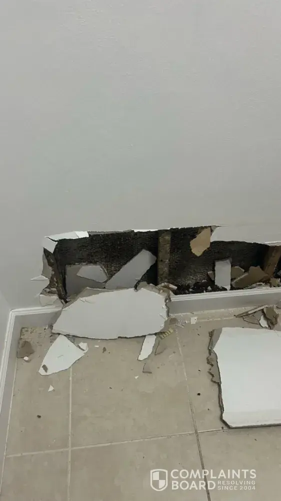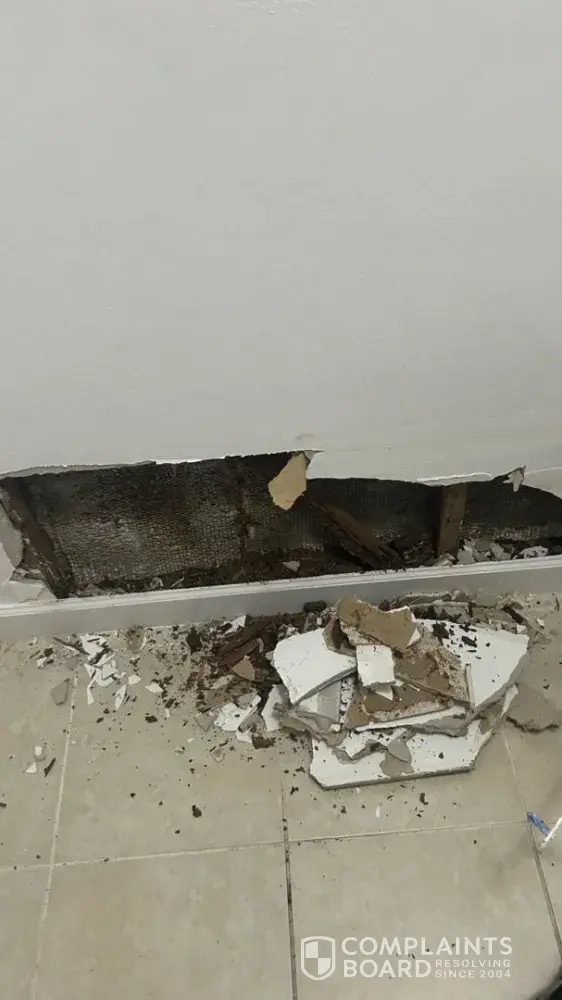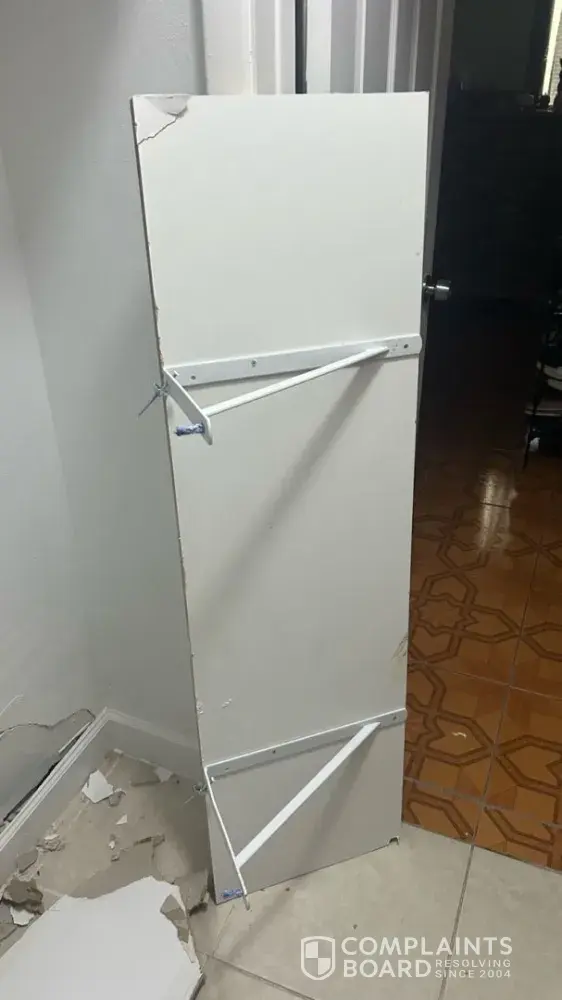 They are charging my mom for a broken wall that was already broken on the moving day and reported the same day with pictures 10/28/2024. 11/07/204 a technician come on-site from 8 am to 8:44 am applied patching plaster mud over the broken area and left. Reported it again and explain that the wall was not fix and add another work order. Two months after when they finally send someone to fix it properly they decided it is the resident responsibility. You could see in the pictures the pieces of wood they have in the wall are rotten.