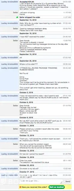 The seller provided a tracking number that didn't work and when my trainers arrived they were the wrong size! I asked for 10.5 UK and they sent me 8.5 UK
