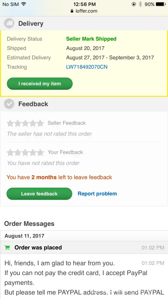 This year february I ordered three two bags and one wallet from your site ( they were all from different sellers however). It was my first time purchasing from your website and I was pleased with the products and prices so i decided to go ahead with trusting ioffer! Biggest regret of my life! It's been more than three months and I still haven't received neither of my items, I have contacted each seller for the past three months and haven't gottten and reply from either of the seller! They aren't doing anything, neither replying or giving me a refund! Seriously is that what you call customer service?!? I'm tired of this BS! I needed new bags to use for my holiday in June and well unfortunately thanks to this site I now have to go look for bags last minute! Seriously so much for trusting this site! Please do something to solve this disputes otherwise I will be forced to take further actions.