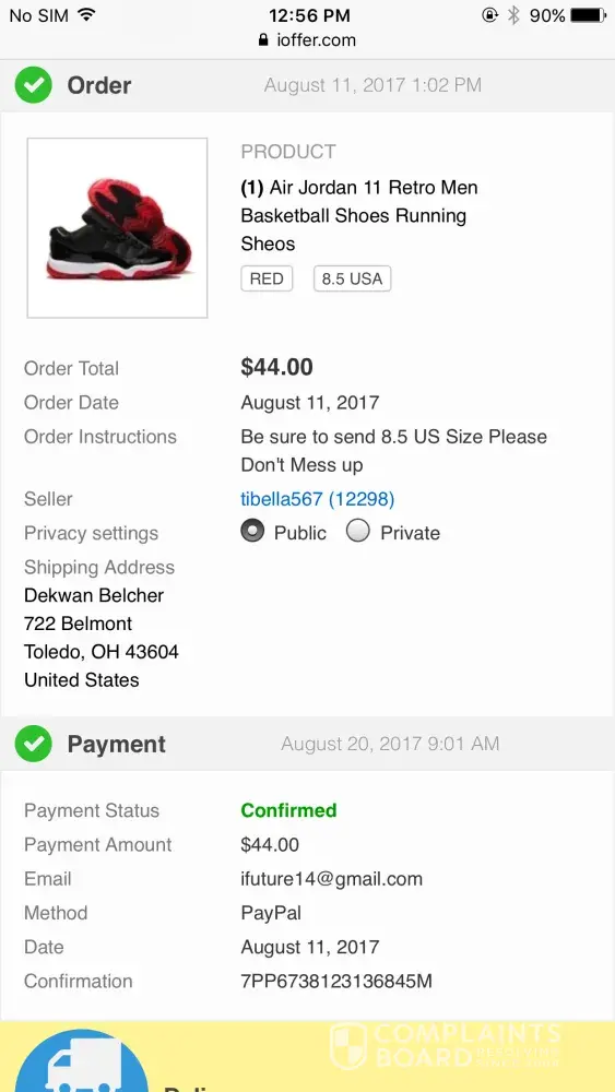 Iv had full conversations with the seller he said he will send the shoes then when he said he sent them he said something happened to the package when I asked for the tracking number then he said he will send another one and I asked him could he send the tracking number he never reply you guys really need to get you business together how can you have scammers on an buy sell trade website like this is out off hand I want my money back Now His name is tibella567 (12298) and he is an scammer with fake reviews I don't see how you guys don't see this type of stuff on your screen like get me my refund or something will be happening very very soon!