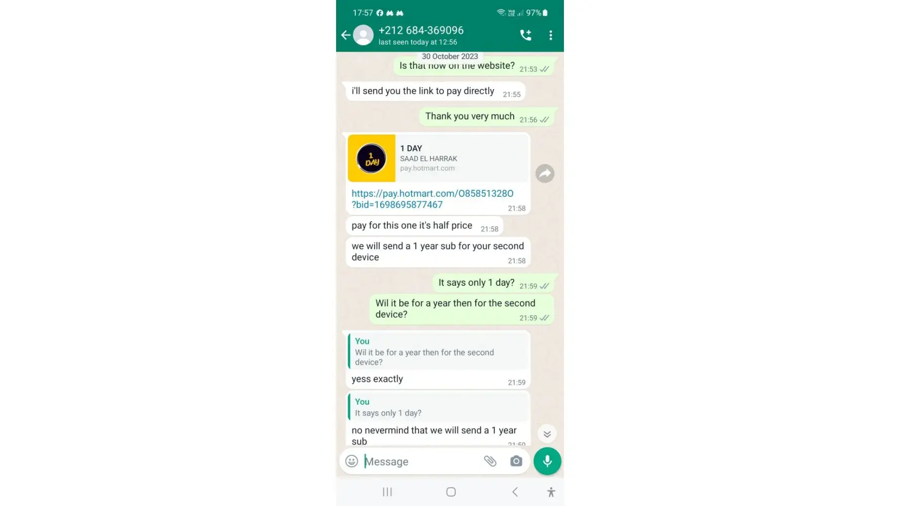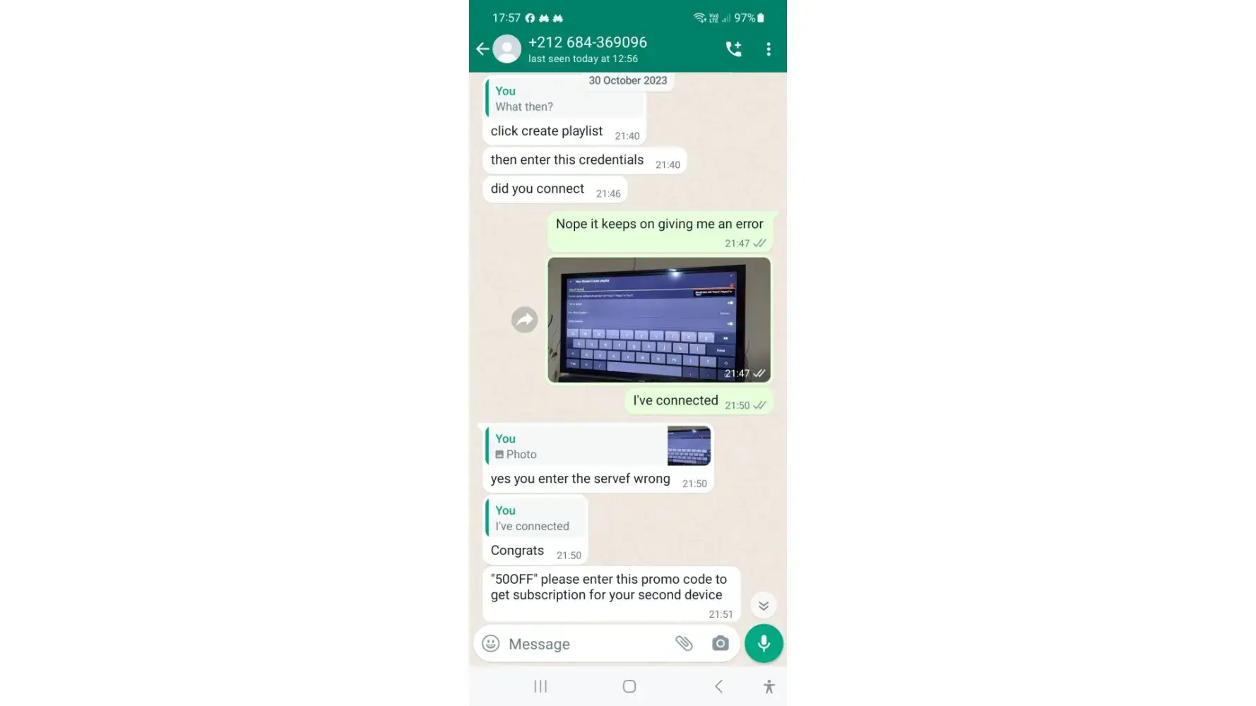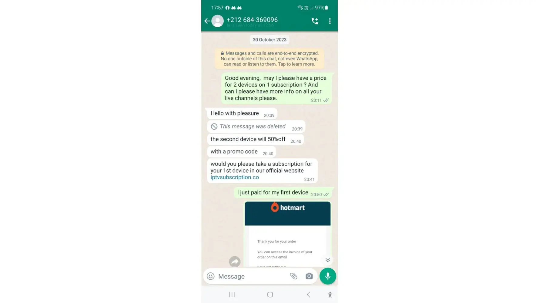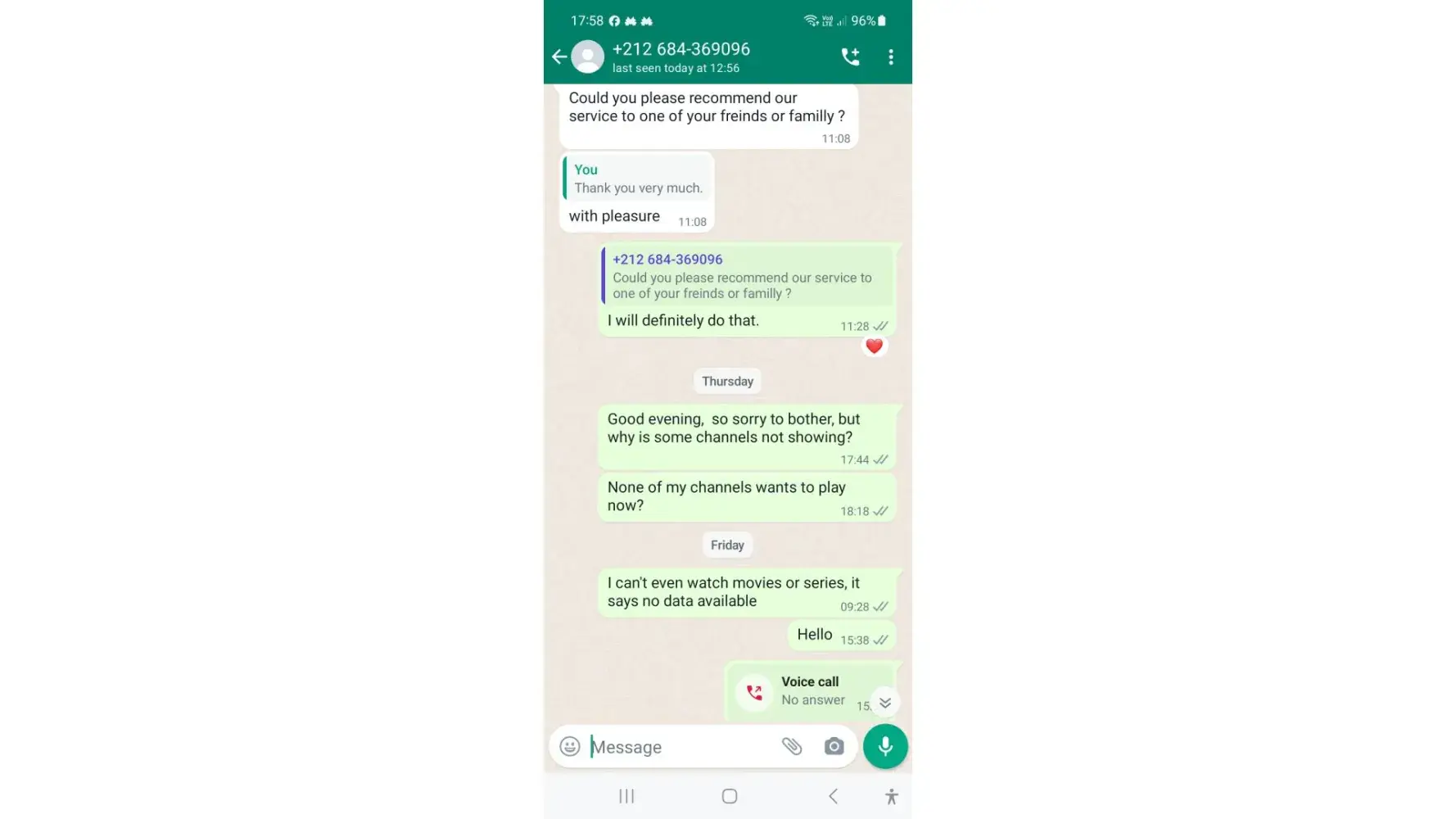 On 30 October 2023 I saw an add on goole for iptv africa services. I went to their website. I saw that you can talk to them on whatsapp... I’ve sent a message and they got back to me quickly. I paid for my product for a year subscription on 2 device. I installed everything and the program really worked well up until the 30 November... Now the service provider don't want to talk or aswer me at all... Unfortunately I feel that this is not right... No one minus to pay, for a service, but to pay for a service and there is just no service is unacceptable. Please can you assist me in this matter. Kind regards. Marieta Norden. South Africa.