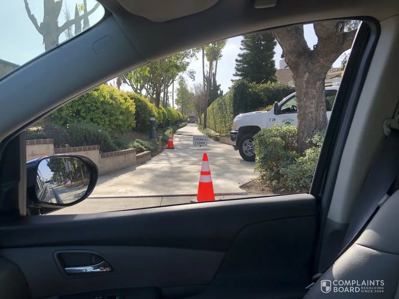 This incident took place Wednesday, March 4th, around 7:55 am. We were walking our normal route to Brywood school and we couldn't go because the road was blocked due to trimming the trees. We were almost late to school. I had to run back home with my 2 children and get in the car and drive. This is very frustrating because there is no notice to when they will be closing the road. We leave to walk to school at 7:50 am and get to school by 8:10 at Brywood. They need to start later if they are going to close the road. The way we go is Escudero onto culver and we take the green belt there between Trabuco and Escudero. We live off of Andele Way in the Raquet club and take Andele Way To the green belt to Deleware to Brywood. I have attached photos and a map and drew in red our route to school. I am just so upset that we didn't go to school our normal way. Something needs to be done about this.