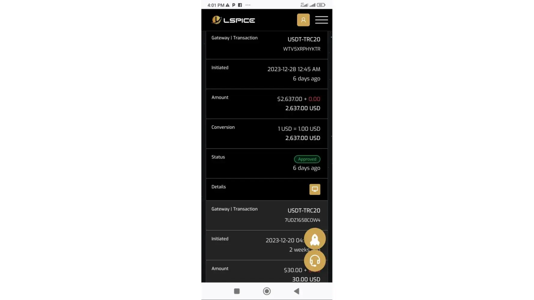 Your deposit request of 2,637.00 USD is via USDT-TRC20 is Approved .