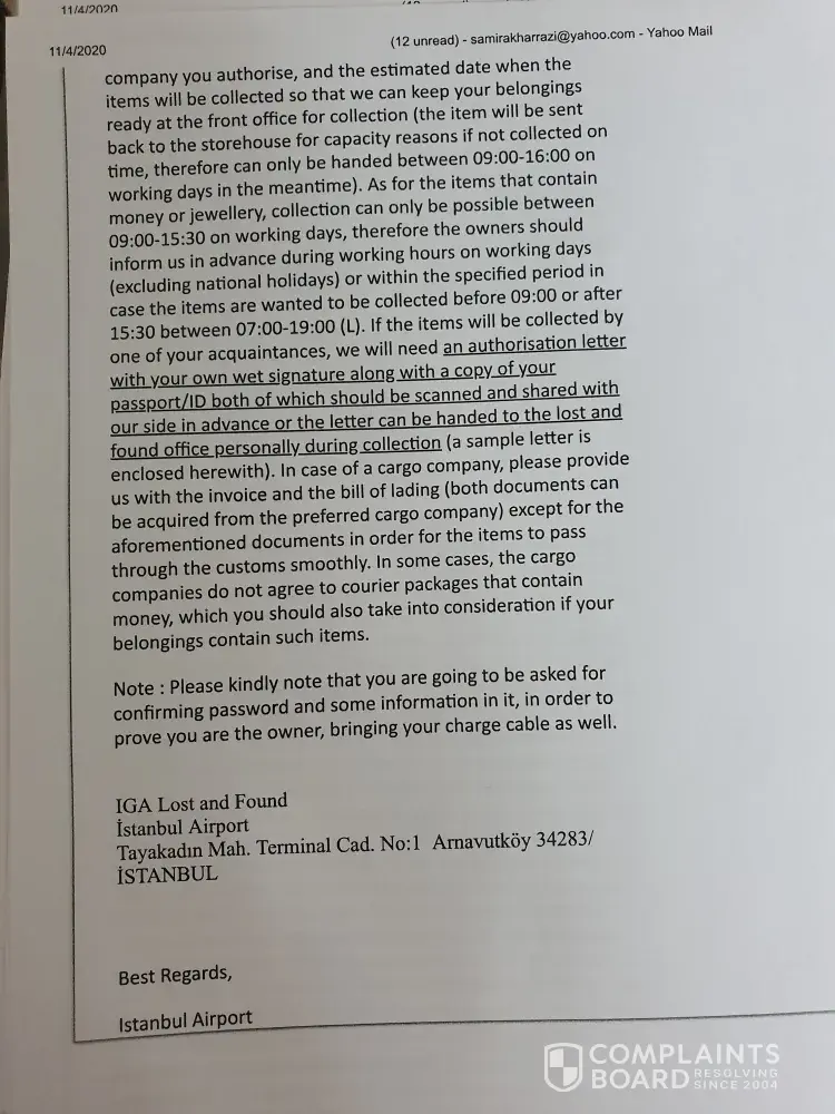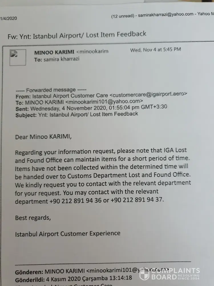 I had been writing this email to istanbul airport from 23 Decemeber 2022 till today no one give a feedback.