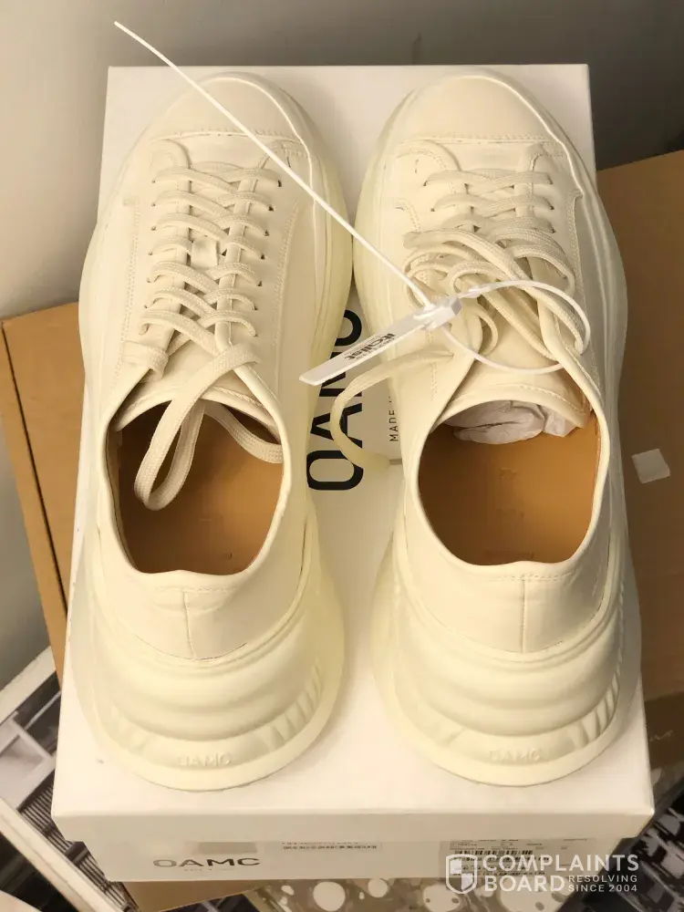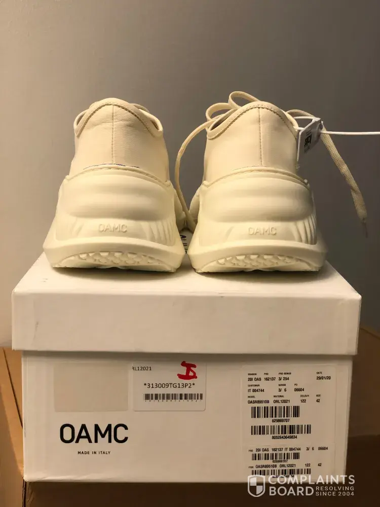 Order number: 00294400 Order Date: 2/7/21 Item: OAMC Free Solo Low Sneakers In Beige Leather (OASR89510BORL12021122) Size 42 Cost: $342.64 Payment method: Debit MasterCard Received date: 2/17/21 Contacted italist.com on 2/18/21 The sneakers looked perfect at the first glance but as I looked closely, there are little blue pen marks, almost purposely drawn...