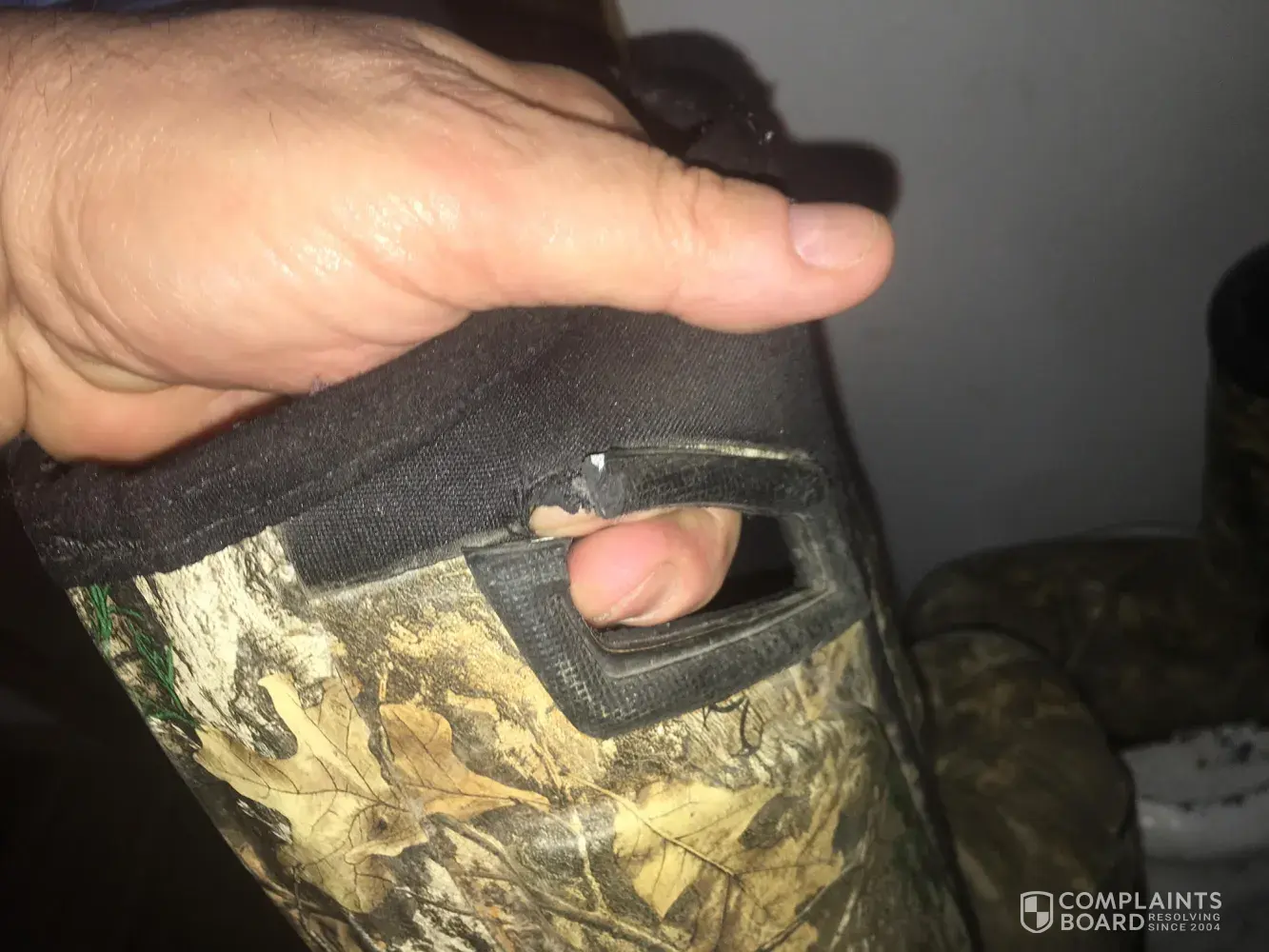 Hi my name's Gabe Shrauger. I am an avid hunter fisherman and I am a land surveyor by trade. I bought a pair of your Itasca knee high waterproof boots size 13 mens in December of 2020. I wear the boots occasionally when in shallow water. Today I noticed there is a rip near my ankle. It didn't not get caught on anything or cut by anything. They are no longer waterproof. I have pictures of the rip I can send. I really like the boots and was wondering if I could get sent a new pair. Thanks for your time. My email is [protected]@gmail.com. Phone number is [protected].