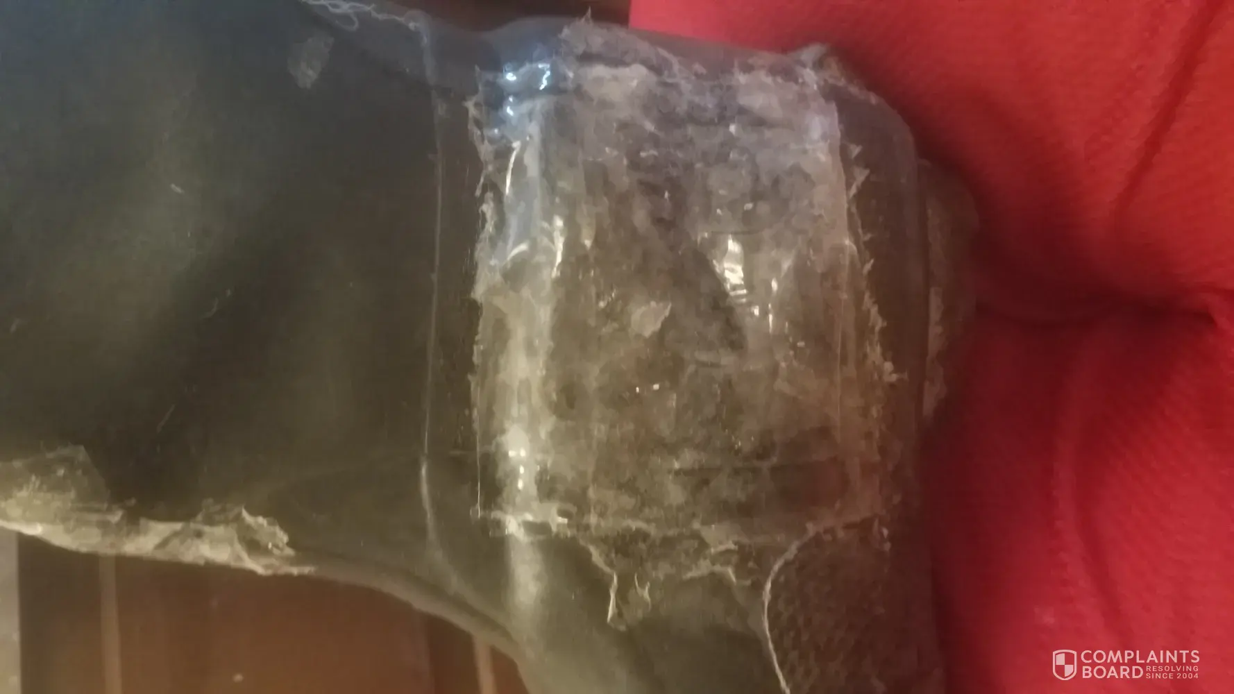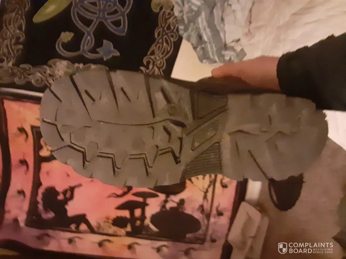 The next time I went to get the boots, they had fallen apart. I can assure you that this was not done by wear and tear but by a defect in the boot material as shown by the pictures I have attached.