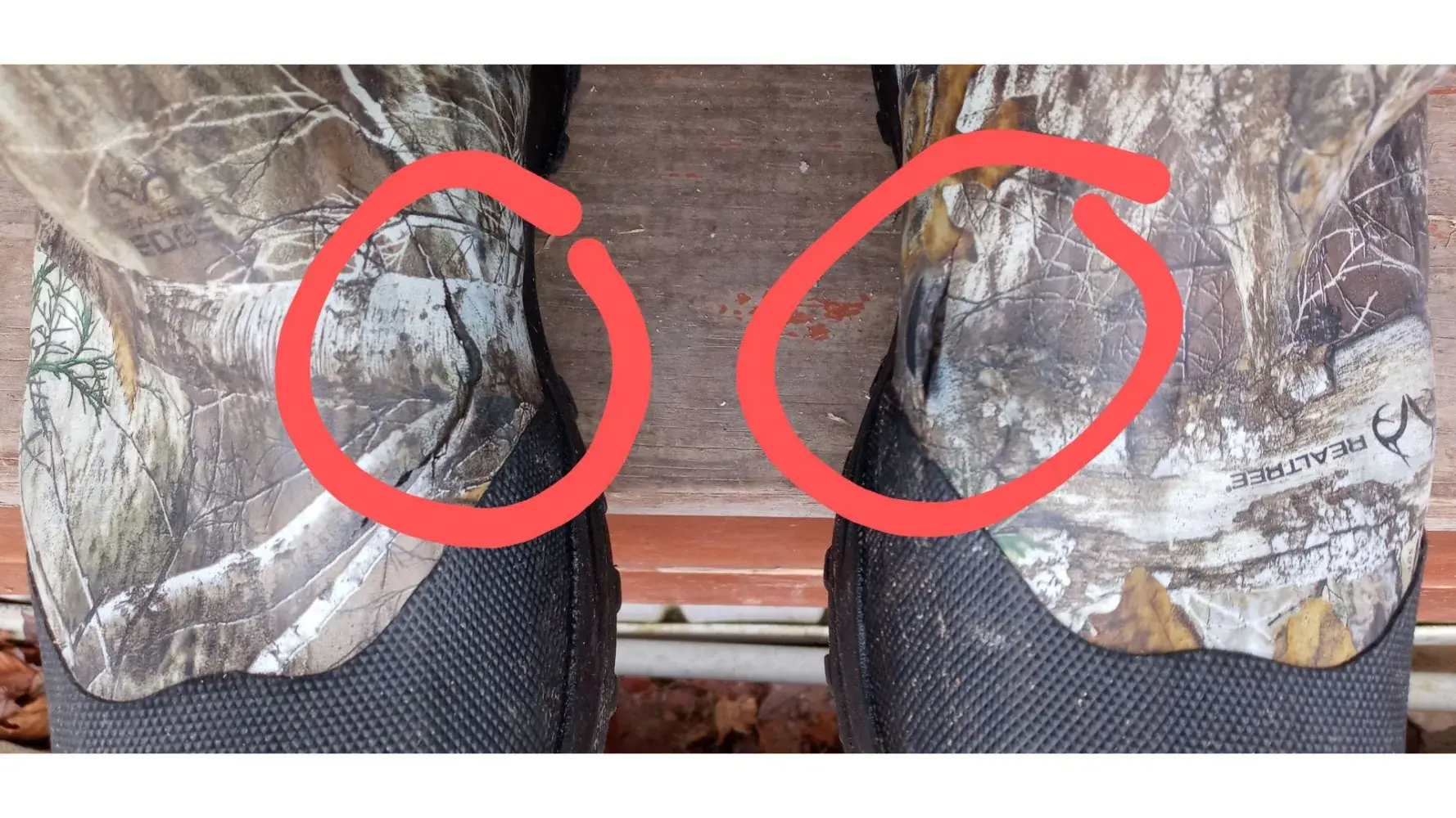 To whom it may concern: I bought a pair of these boots in November 2020 and the rubber on both boots cracked and split open on the top and sides of each toe when I bent over to tie my kids boots 02/14/2021. It's like the rubber is dry rotted and cracking, making these boots no longer waterproof or usable for what I need. I have pictures however I'm unable...