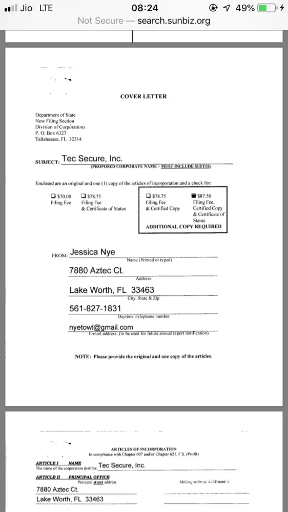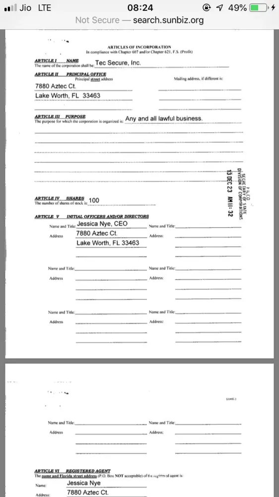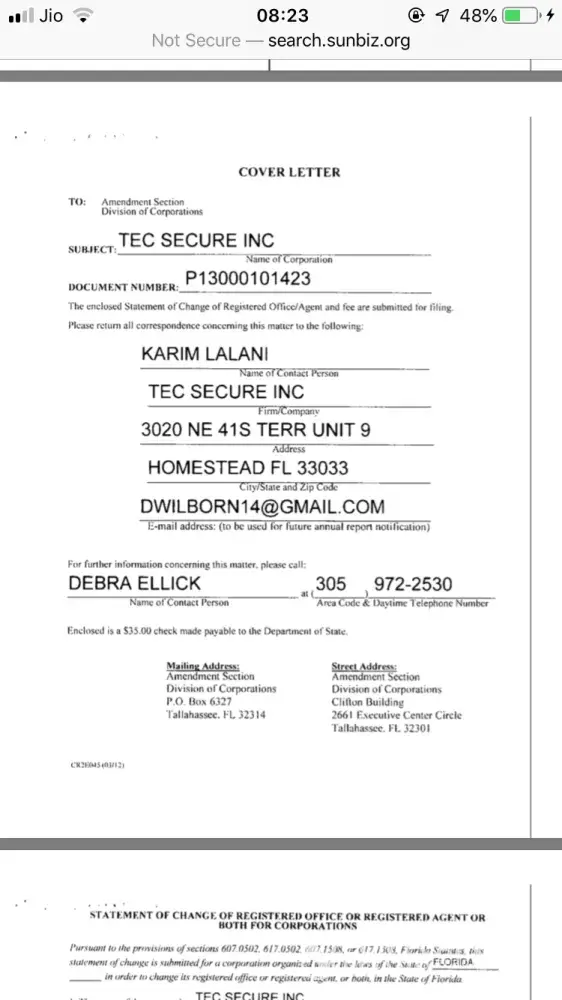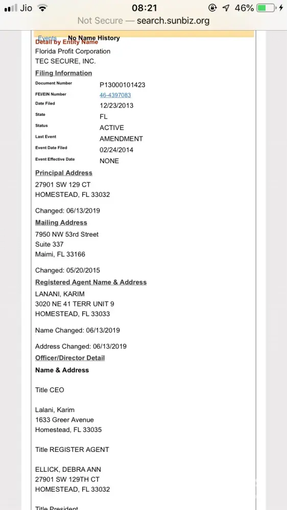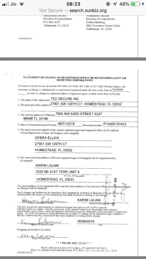 Attached are Kaz's companies registration details and how he opened his company in someone else's name first and later after making a big behemoth he took charge of the same company tec secure inc