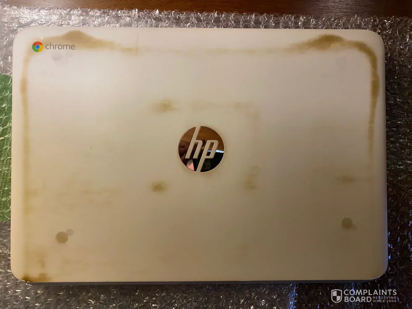 I ordered a white Chromebook for my grandson's birthday so he could do his online schoolwork. What I received was an insult. It wasn't white. It was brown like it had been grilled or blowtorched. I requested a refund. It took days for a response. They requested photos, which I gladly supplied. After I threatened to file a fraud claim with my credit card company, they finally sent me a RMA, but I had to pay to ship the laptop back, since they claimed it "wasn't defective". See attached photos.