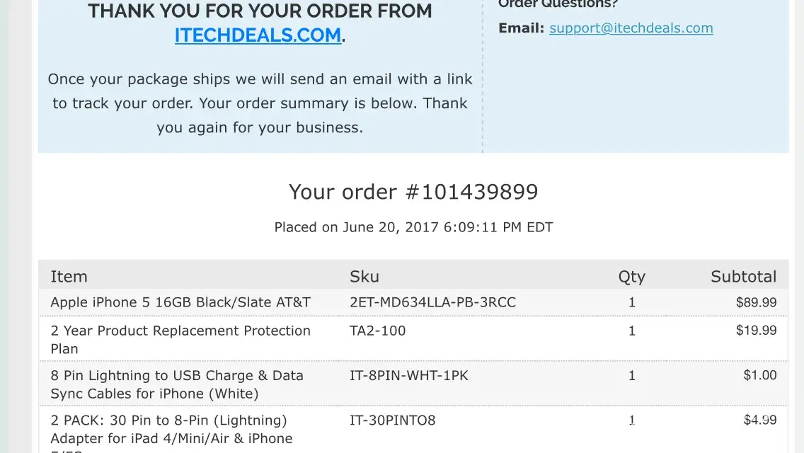 iTechDeals.com online order I placed yesterday, 7/10/17