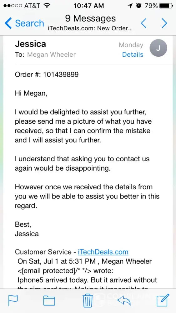 iTechDeals.com ipad damaged - unsatisfactory service reply