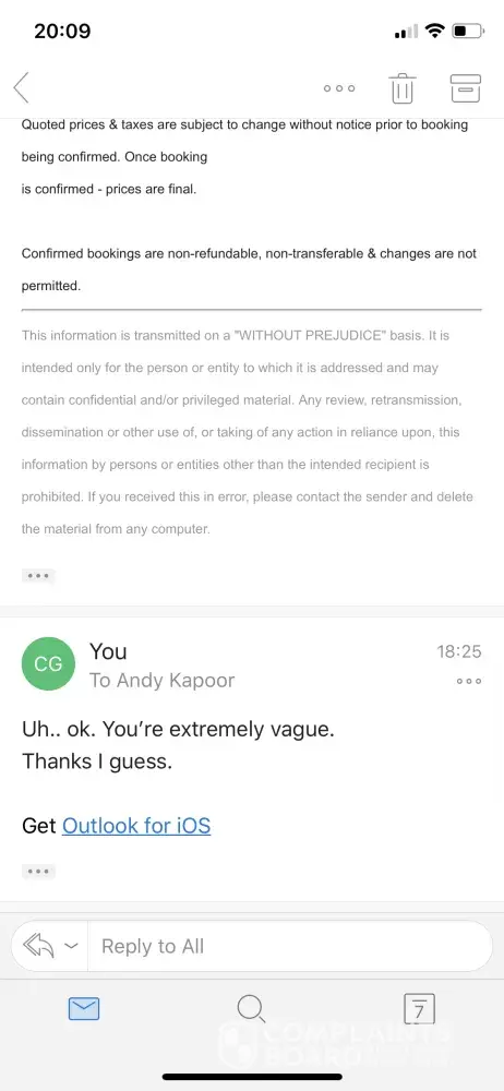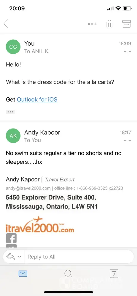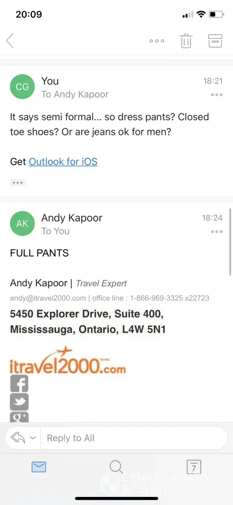 Desired outcome: A response email to [protected]@hotmail.com. Some sort of compensation for the poor service and forAdded stress as. I paid for trip in full and got this poor customer service