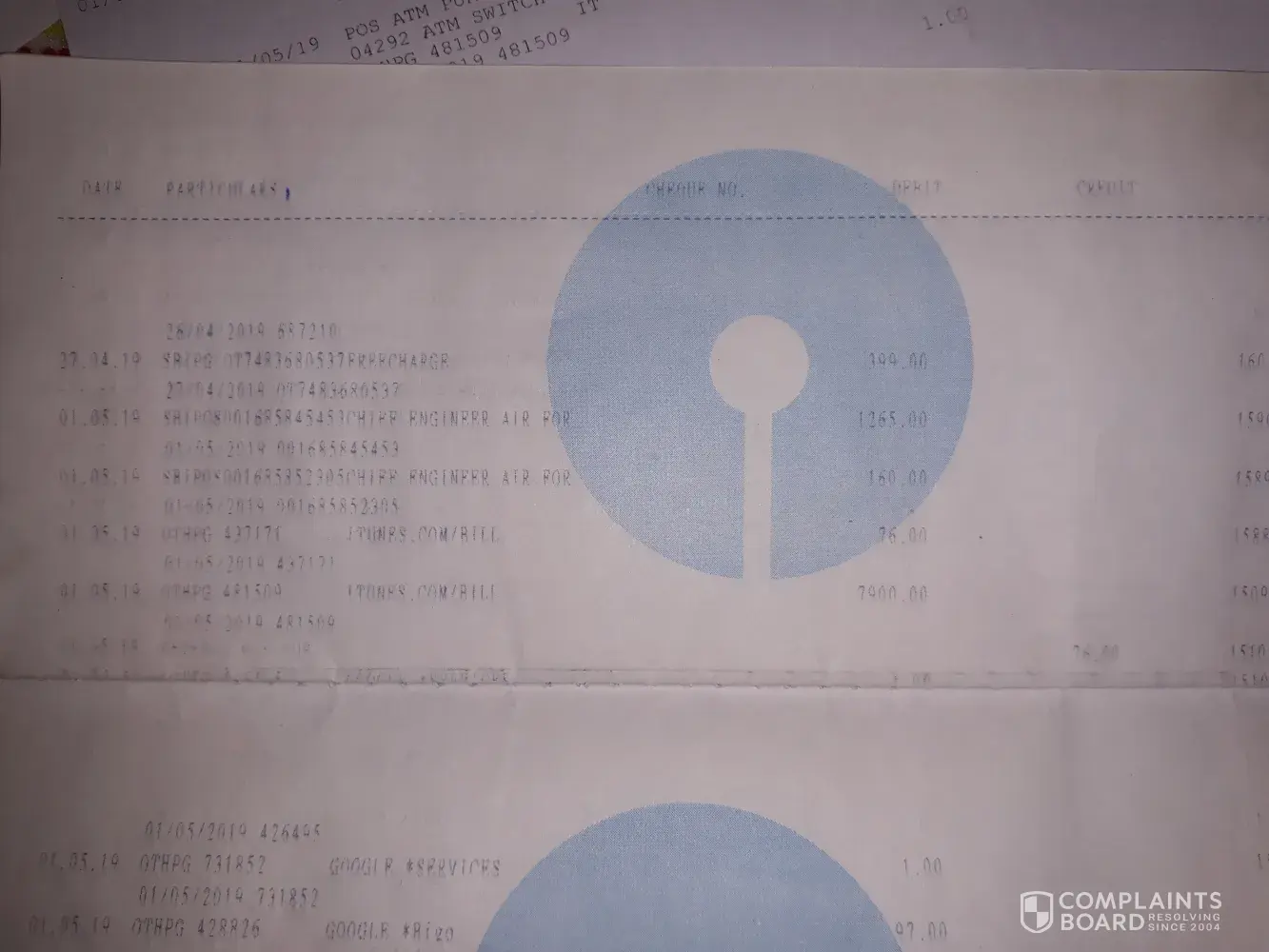 unauthorised transaction of debit card rs 7900.00 date 01may2019