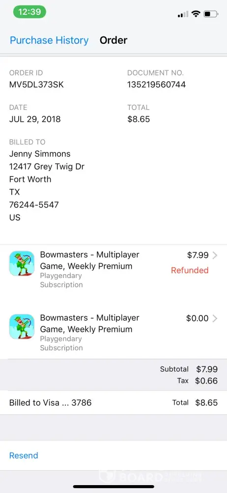 My daughter (age 9) accidentally purchased Bowmasters Weekly Premium App for 8.65/month (we have family sharing, so I have to approve everything). I cancelled the subscription a few days later and they refunded the money, July 29, 2018.