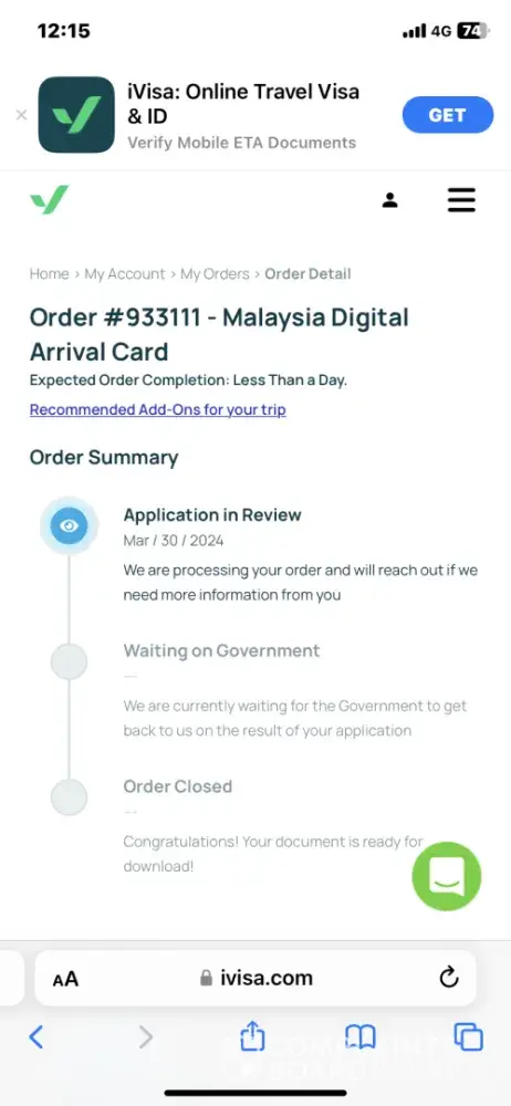 Given the urgent nature of our trip, I sought to expedite the visa application process for my helper. In my search, I discovered the platform iVisa, which promised visa issuance within 30 minutes. Trusting their service, I proceeded to pay SGD $149.79.