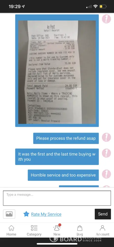 Finally I get the address to return it and I went to the post office and paid 30 euros to return. My order was around 120 euros. I sent the receipt the post office provided me with the details requested.