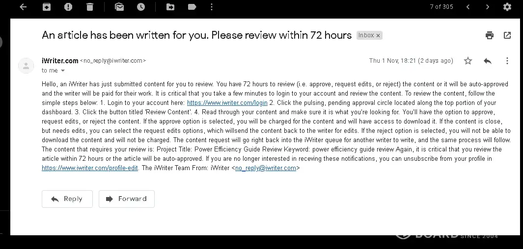Later that day, I decided to check if he had managed to get any work done. To my surprise, I couldn't log in to the account, and there was no notification of any changes in the iwriter accounts affiliated email.