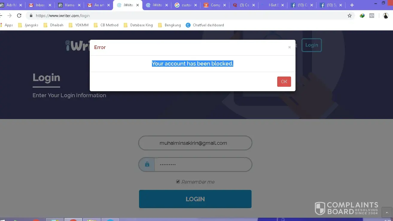 My situation is, I submit content to barnard10 within 5 days to deliver. On the fifth day, iwriter sent me an email to review the article. So when I wan to login, I got the error "Your account has been blocked"