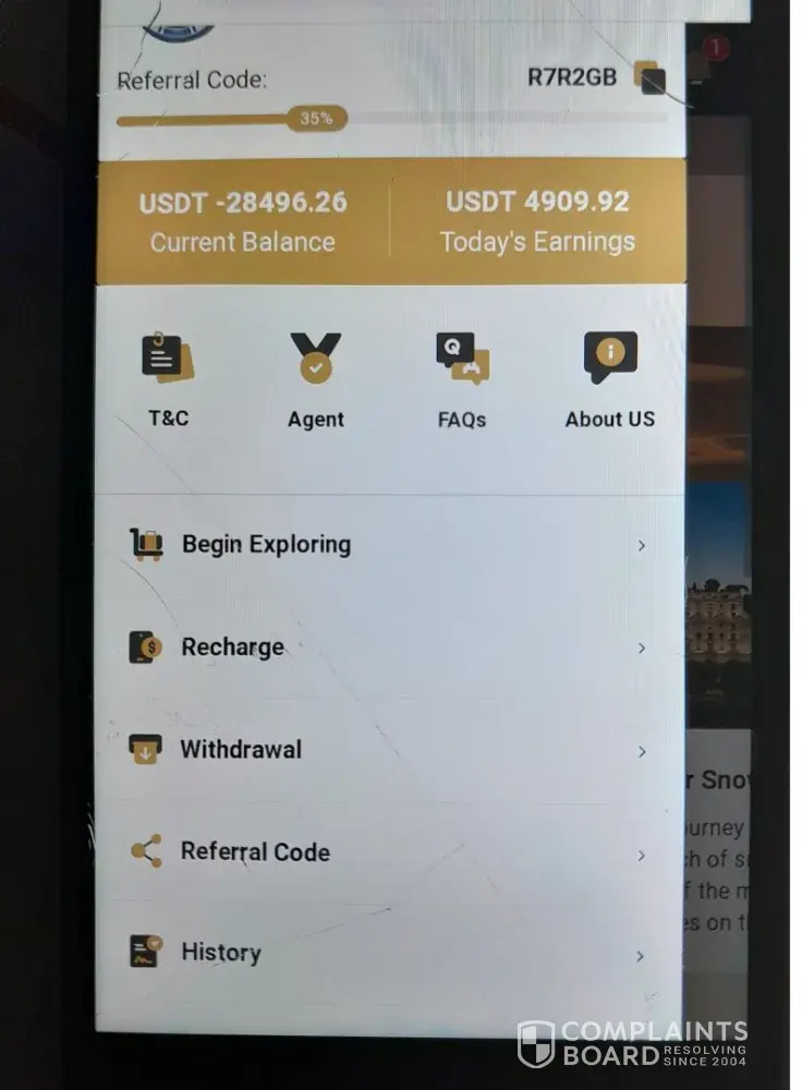 At fake website Alex John Malcolm will ask you to register and click on 5 star rating to complete 35/35 exploration. In between negative vaules will be filled by cryptocurrency. He asked me to deposite all the negative values around 400000USDT and after submission on the website. He blocked me immediately. He is scammer.