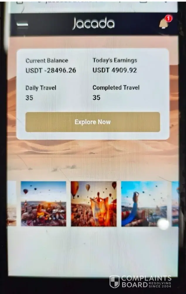 Jacada Travel Telegram Prepaid Task Scam by Alex John Malcolm (Managing Director of Jacada Travel) Fake job offer by Jacada Travel : Online assistant job After registration of website called www.jacadatravel.com or www.jacadatravel.uk They will ask you to click on the 5 stars rating to every travelling package. If any regative value display on the screen in...