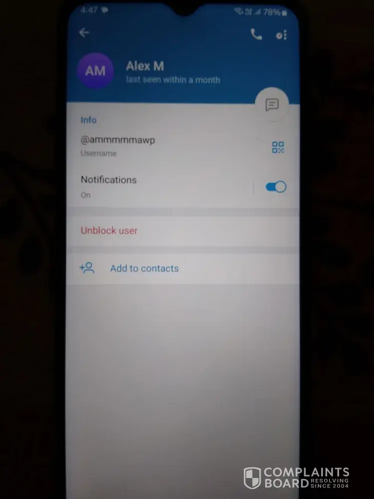 I tried to contact him but they blocked me immediately without replying. Then again they asked me to deposite money around 45000USDT by Telegram Prepaid task by Merchant (Alex malcolm) but I refused to pay this much.