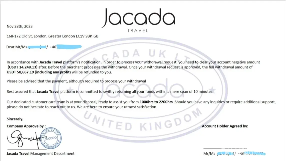 Read full reviewJacada Travel scam by Alex John malcolm and HR christine