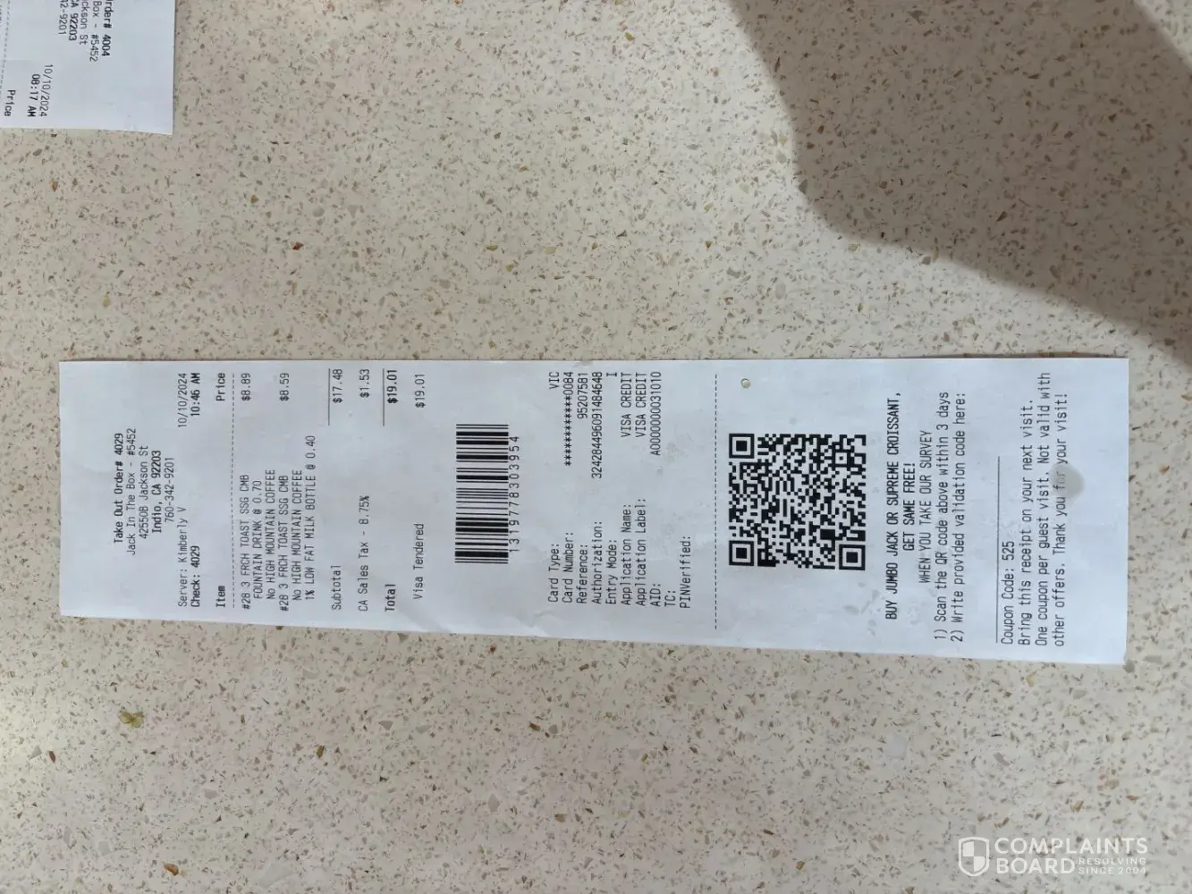 899 Jack In The Box Complaints