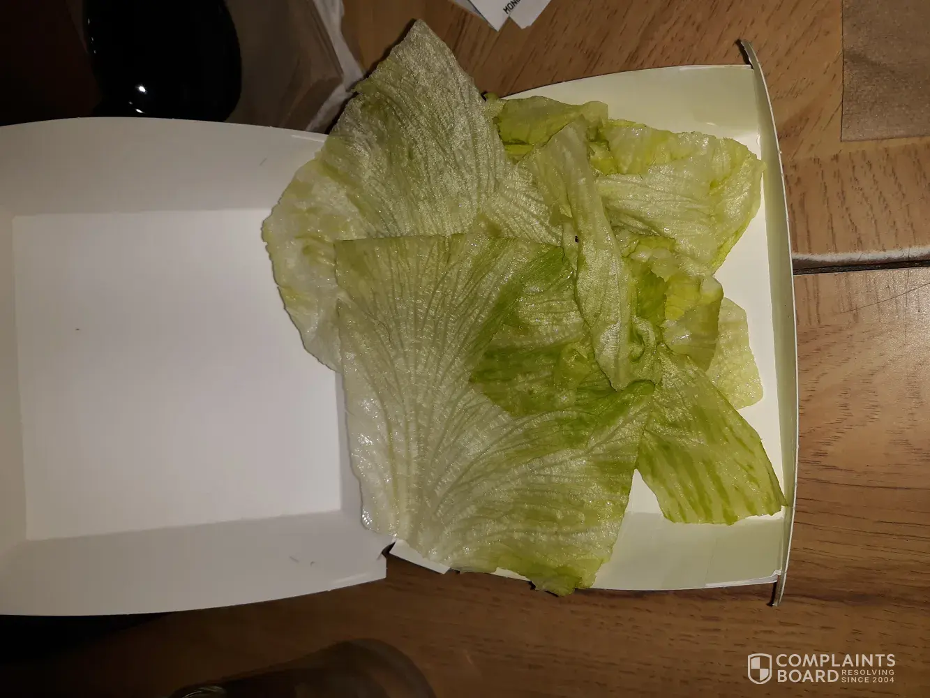 JIB# 1164 03/13/2020 @ 04:31:55 PM. EMP: Marissa carry out # 412 I ordered 1 fish sandwich, 1 bacon ultimate cheese-NO mayo, mustard, ketchup-ADD lettuce, tomato, onions. 1 onion rings, 1 chocolate overload cake. What I got: Burnt fish, a cheeseburger with no bacon or onions, BUT 10 large pieces of lettuce? I took a photo pf all that lettuce. Onion rings and cake were ok.