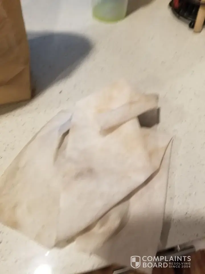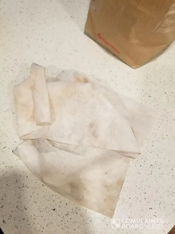 dirty towels on counter or restaurant which ended up in my food bag.