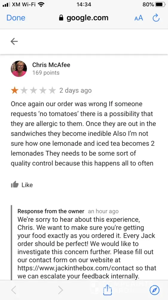 choking on your breakfast jack and poor customer service