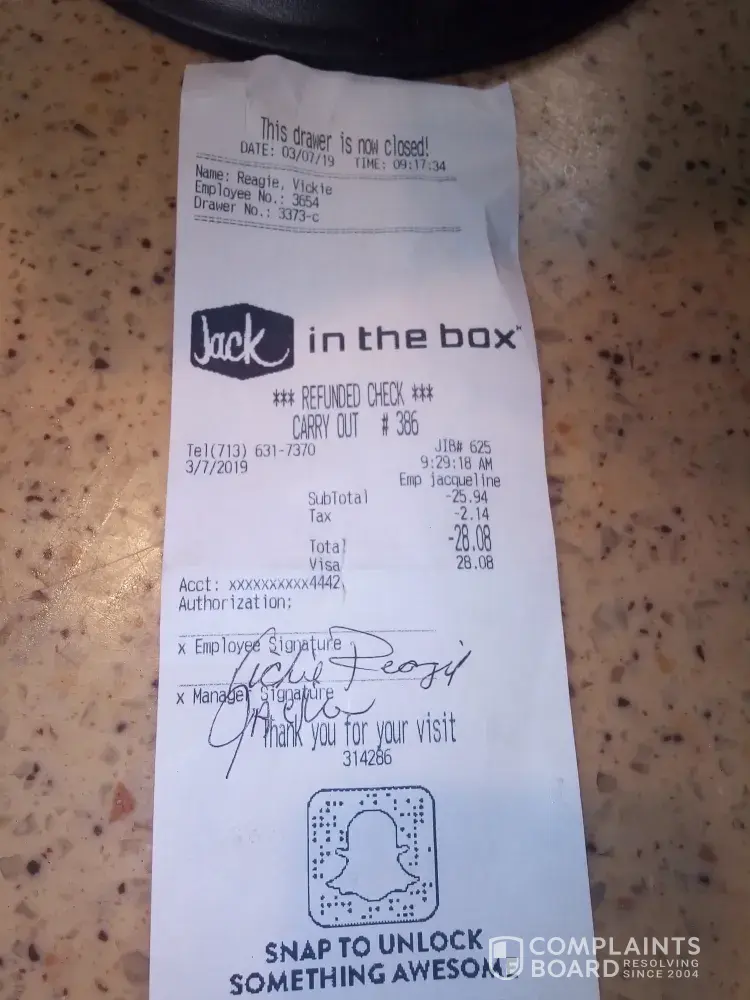I had 7 hungry teenagers after a game yesterday so quick and easy I ran to jack in the box and ordered two separate orders one for the kids and one for my wife and I. Five of the boys wanted Jumbo's w cheese fries and drinks and I ordered 4 monster tacos and 4 reg tacos. When I got home the boys siad there were 2 Jumbo's missing which I verified counting the wraps and then realized we there was no receipt and our tacos (reg) were so old tasting we threw them away. I did call the restaraunts but they said they couldn't help me w out a receipt I even explained I wasn't given one. To make things worse I ended up having to go to Whataburger for the other two boys missing theirs because I couldn't bring myself to spend more at Jack's when I already did. Please fix as I love Jack's but am gun-shy now to go back. Thank you