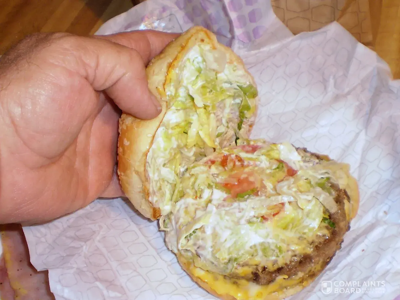 What a nasty piece of crap - see phots of the actual buger I purchased 4-24-11. I couldn't eat it, I had to throw it away.