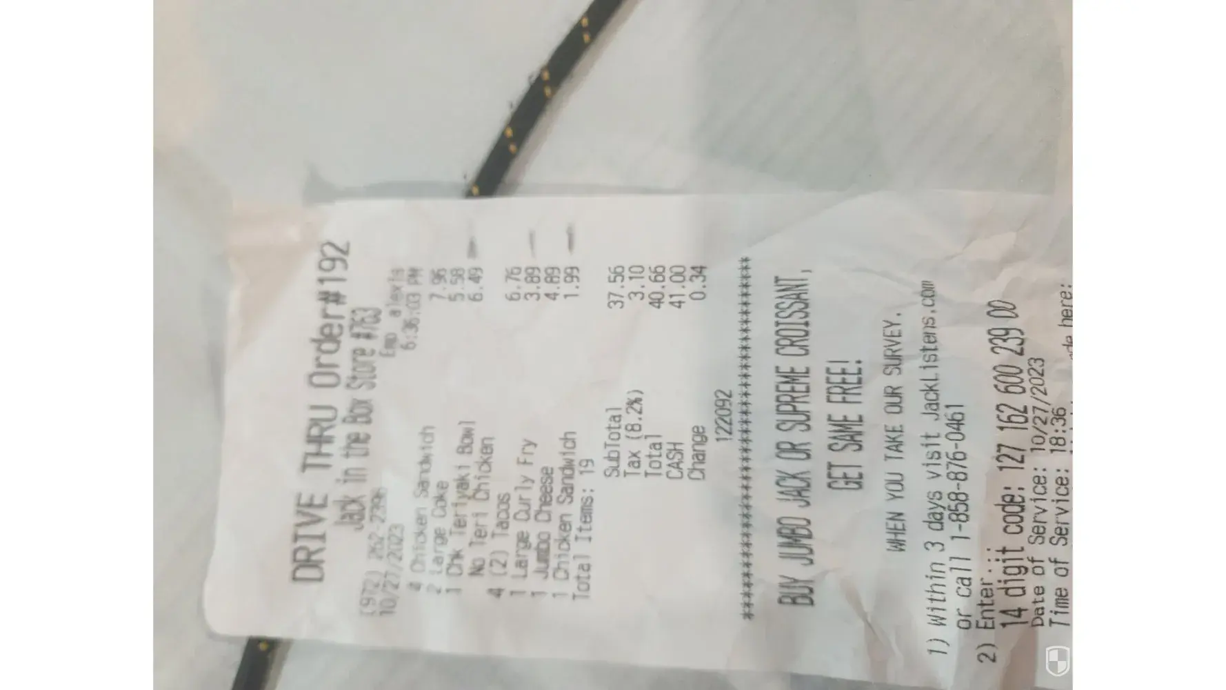 Nothing in the order was right. Chrispy Jack wrap was cold /old. Spicy Chicken Sandwitches had no chicken in them and the curly fries stale and the tacos were missing! Steve Corie