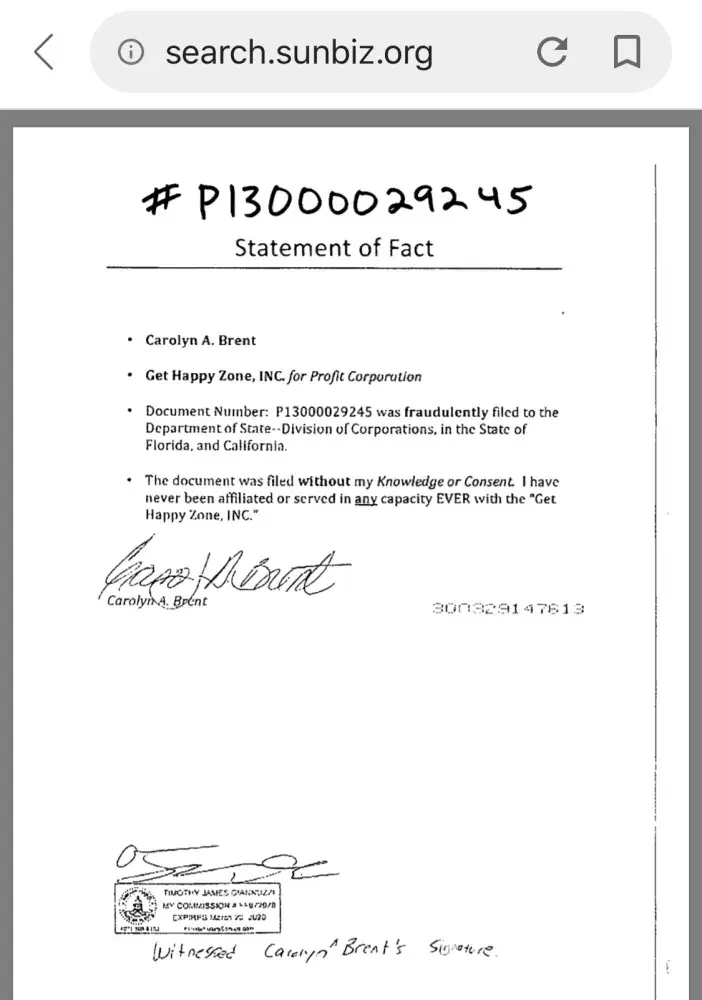 I have NEVER had ANY association or affiliations with the Get Happy Zone Inc.—EVER! Since 2017, I have been tirelessly researching for the evidence I needed to prove— as to how Ms. Ruka was able to commit the act of FRAUD by using my name?