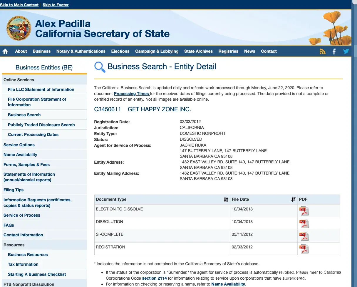 Link: https://businesssearch.sos.ca.gov/CBS/Detail