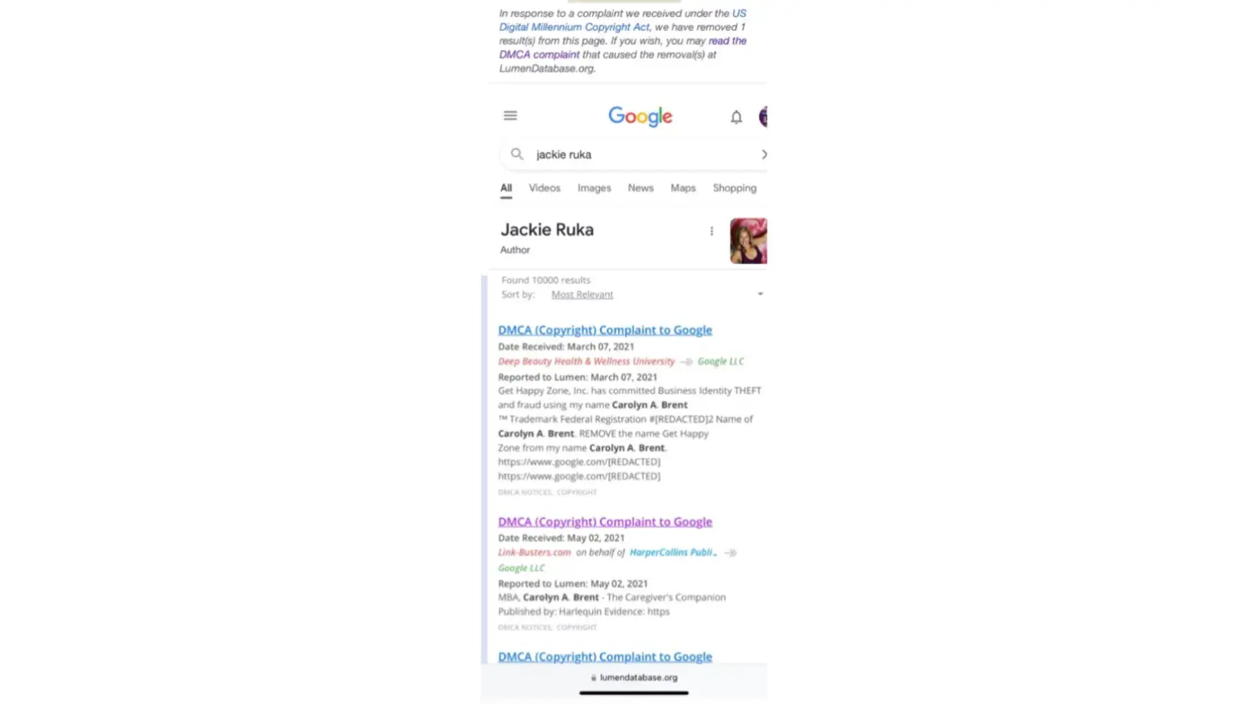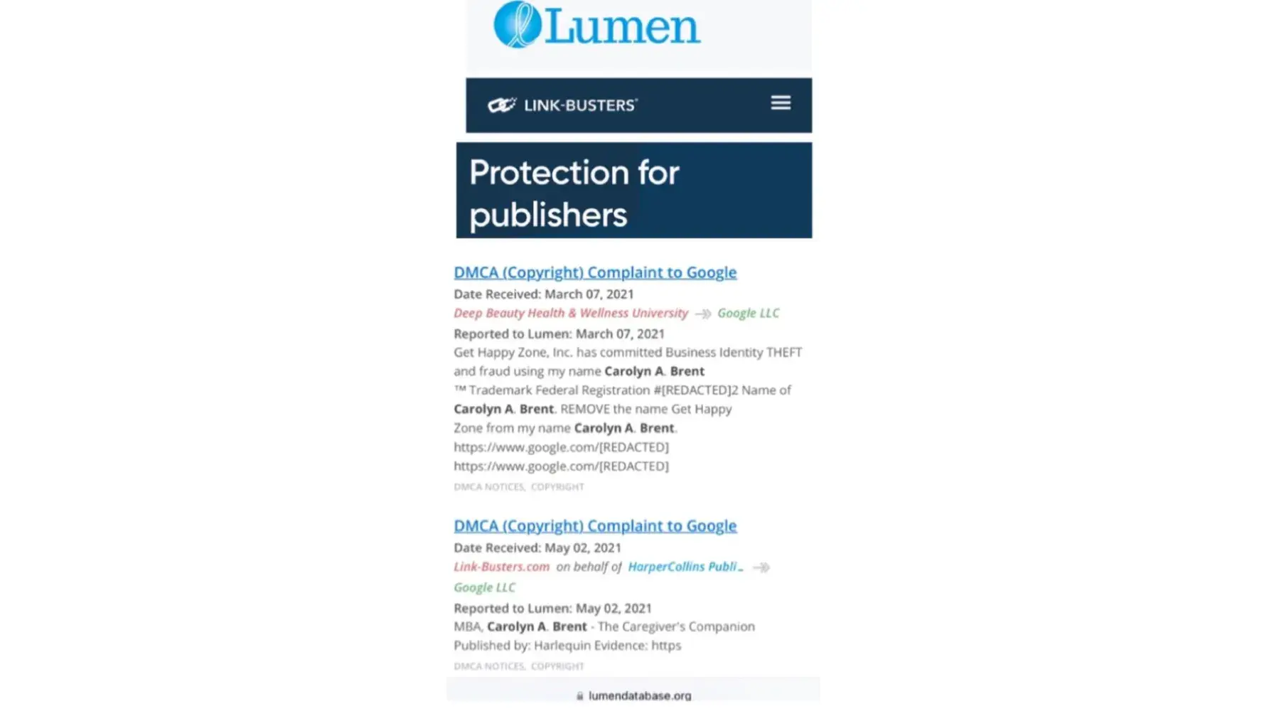 Google, Lumen, Link-Busters Results
