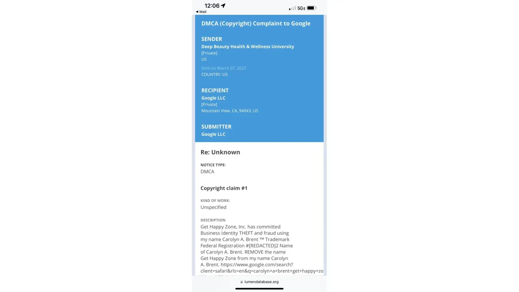 • Unauthorized use on my legal copyright name Carolyn A. Brent (Business Identity Theft).