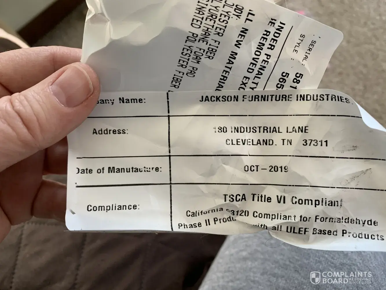 Purchased in July 2019, from Rye's furture in Dickson Tennessee. It makes my leg's, and back hurt, and the wife leg's also hurt from sitting on the sofa, cannot keep it need to up grade to a differant one that would be coffortable, this one is style 549145, S/N 6395380. please advise if there is anything we can do to get an exchange my e-Mail [protected]@peoplestel.net, phone [protected]. thanks for any help on this.