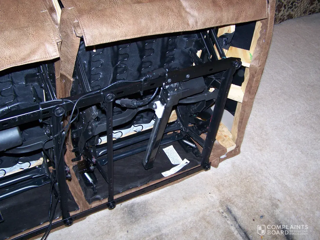 Bought a recliner, first day noticed footrest doesn't come up right. Day two the springs begin squeaking when reclining, day three springs sound like a 20 year old mattress, chair leaning to left... Day 4 moving makes squeaking noise. Went to dealer promised to fix (waiting). When opened back cover noticed rust on springs and wood chips... Apparently they use old worn out rusty springs, paint them and build chairs from scrap parts. Day 10 threads coming out of footrest, one seam is almost threadbare. Upholstery on front side panel is bunching up. This company is ripe for a consumer protection act lawsuit, class action maybe.