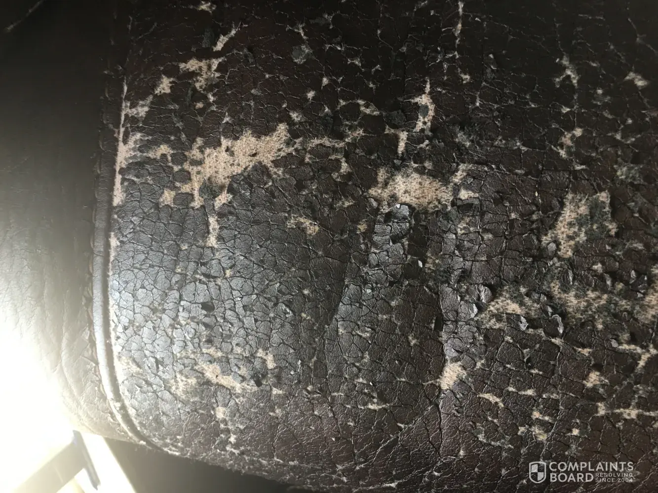 I purchased leather catnapper recliner sofa and love seat from Grand home furnishings. The fake leather material used is coming off the seat area and back area. Has anyone else ran into this problem? It's still a comfortable chair but tired of cleaning up small pieces of fake leather.