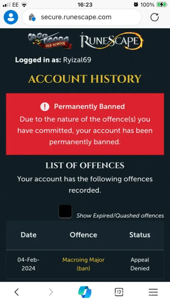 OSRS Ban
